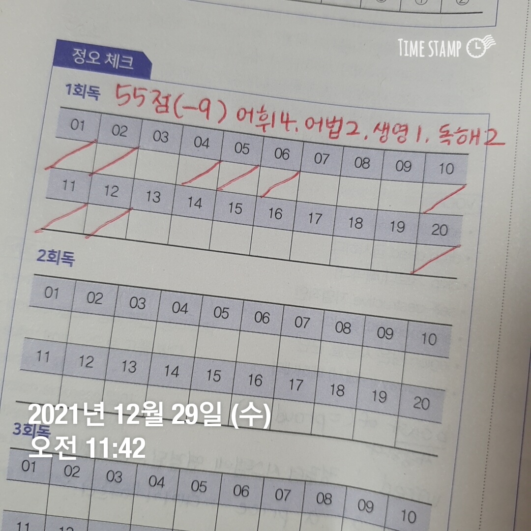 영어는 앞서 말했듯 시행처 모의고사 풀어본 것 외로는 공부를 안했고 영어 단어도 하나도 안외웠다^^...1월에 문법 공부할 예정이다.